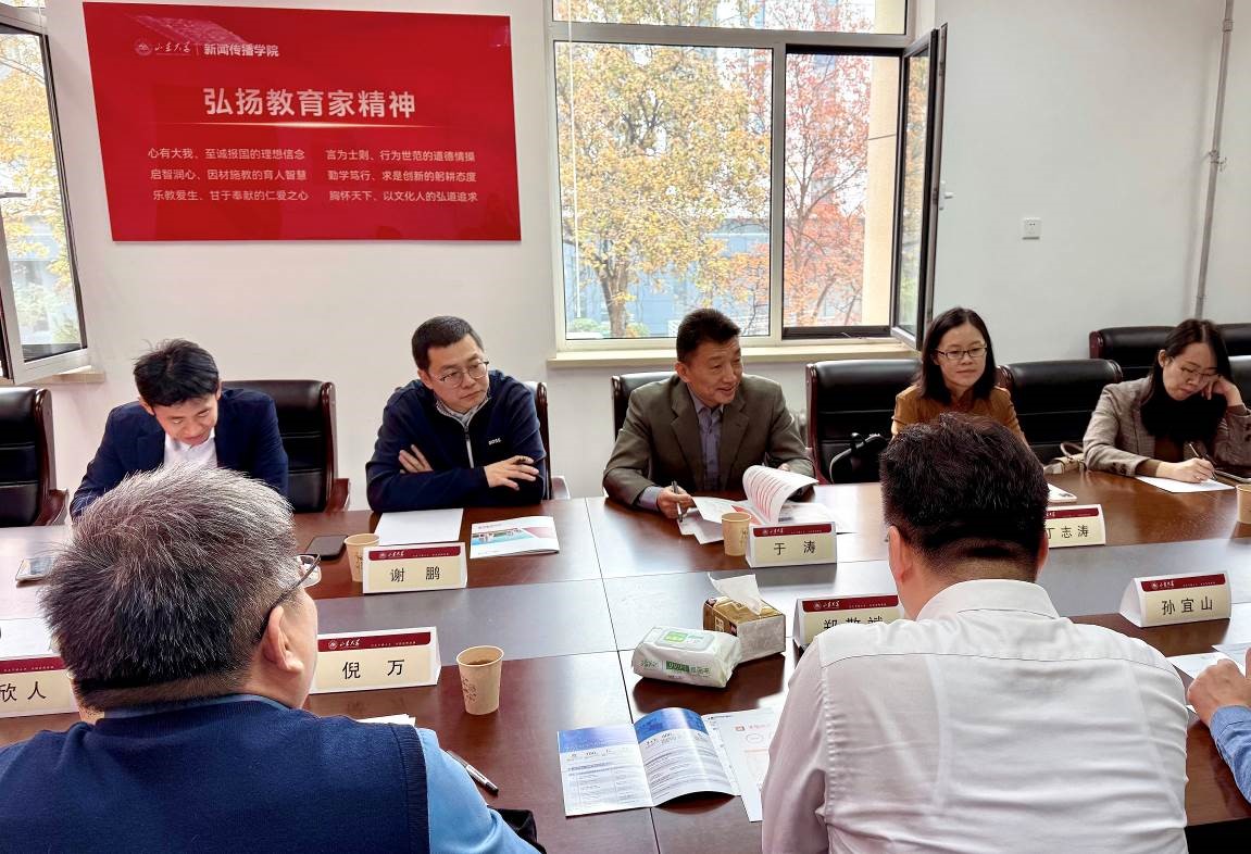 座谈会上,倪万对于涛一行的到来表示热烈欢迎,介绍了学院的发展情况,表示学院高度国际新闻与传播专业的发展,希望双方在原有基础上进一步拓展合作领域,探索人才共有、成果共享的长效共建体制机制,形成国际传播的育人合力。邱凌从科学研究、人才培养两个方面汇报了国际新闻与传播专业的建设情况以及学院接下来在该专业建设方面的规划与展望。