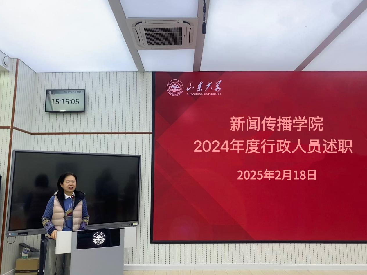 王智洁介绍了我院2024年度行政人员考核工作方案以及工作流程和要求,她强调“德能勤绩廉”是行政人员综合素质的集中体现,通过述职,行政人员可以相互学习、取长补短,立足本职岗位,贯彻落实新学期学校重点工作要求,切实提高为学院发展服务意识、体现服务学校世界一流大学建设的新担当新作为,为学院的教学、科研和学生工作做好坚实保障。