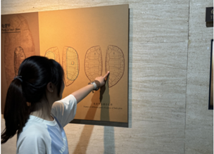 博物馆内,浓厚的文化氛围扑面而来,每一位参观者仿佛都步入了一个充满智慧与魅力的文字世界。在“甲骨纪事”展厅,成员们近距离观察了商代甲骨文实物。这些古老的文字,不仅是商代历史文化的见证者,更是先民智慧的结晶。通过专家的讲解和多媒体互动体验,成员们真切体验了甲骨文的书写过程,感受到了汉字文化的源远流长。