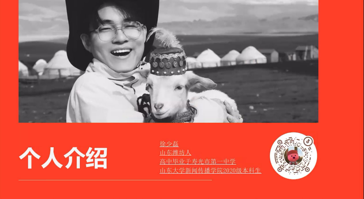 随后,山东大学第26届研究生支教团成员徐少磊以“支教是一场苦旅”为切入点,用“上岸、陌生、对冲、脱缰、初心”五个关键词串联起自己的支教故事分享。他讲述了在新疆这片土地上的所见所闻,分享了自己与学生相处的种种瞬间以及支教活动带给他的深刻思考和感悟。尽管支教的道路充满艰辛和挑战,但徐少磊始终抱着“苦中作乐”的想法,以“此心光明,亦复何言”的心境鼓励同学们做好准备,下定决心,勇敢踏上支教征程。