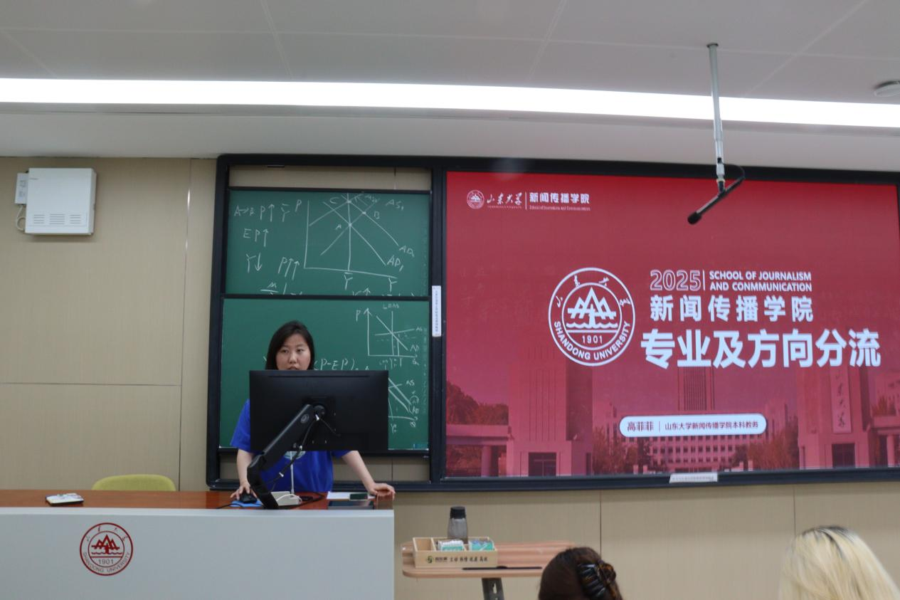 会议伊始,高菲菲详细介绍了专业分流程序,着重强调了分流依据、时间节点和注意事项,还介绍了不同专业的研究方向和课程安排。同学们对各个专业有了更清晰的认识。同时,老师鼓励同学们根据自身兴趣、特长和职业规划,选择适合自己的专业方向。紧接着,4名不同方向的2023级学姐:杨皓然、武立冉、陈苗、李响,结合自身学习经历,分享了各自专业方向的特点,为同学们提供了宝贵的建议。
