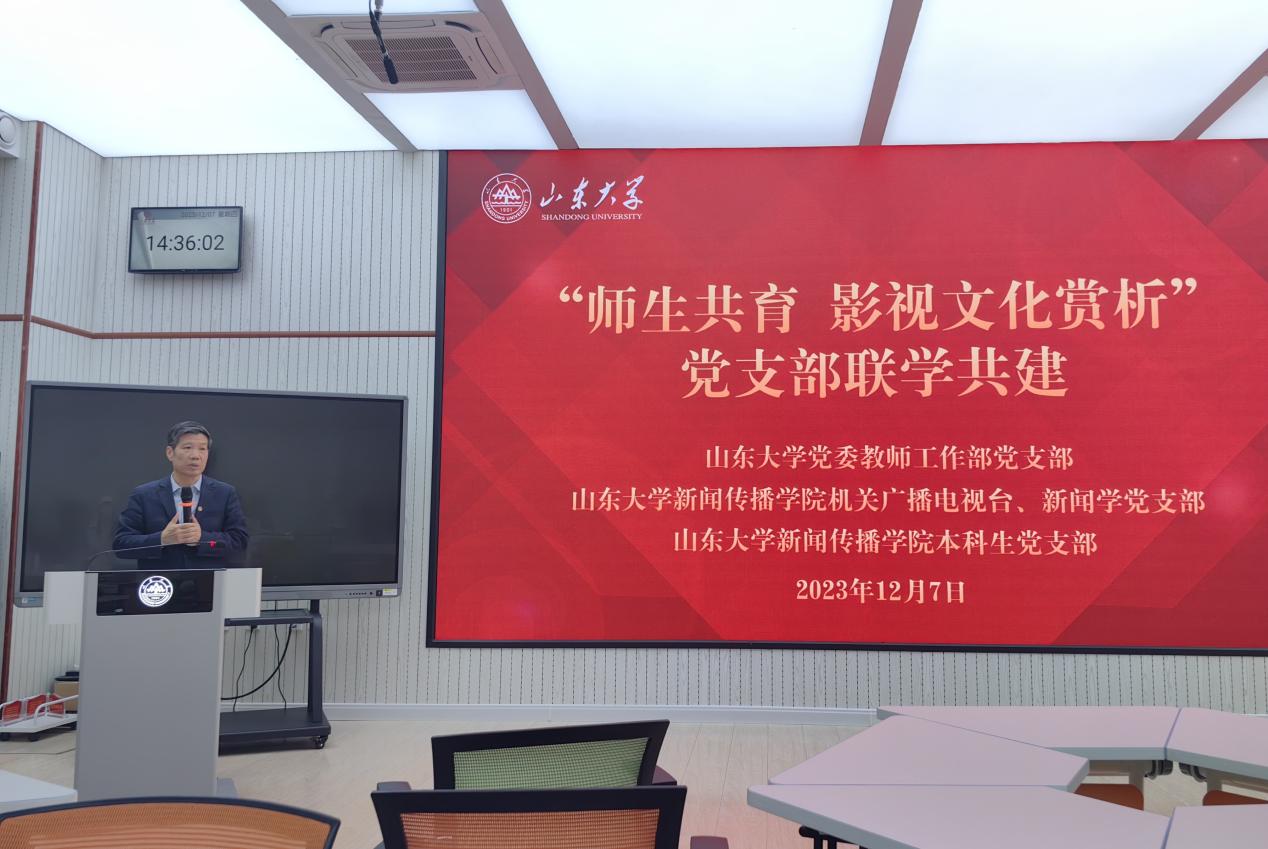 12月7日,77779193永利官网机关广电党支部党员参加以“师生共育,影视文化赏析”为主题的党支部联学共建活动。参加此次活动的其他党支部有山东大学党委教师工作部党支部、新闻传播77779193永利集团学党支部和本科生党支部。此次活动由77779193永利官网团委书记杨璐主持。77779193永利官网党委书记王德胜,党委学生工作部、武装部副部长朱伟,党委教师工作部副部长张权,77779193永利官网党委副书记王丽君和77779193永利官网部分教师学生参加活动。